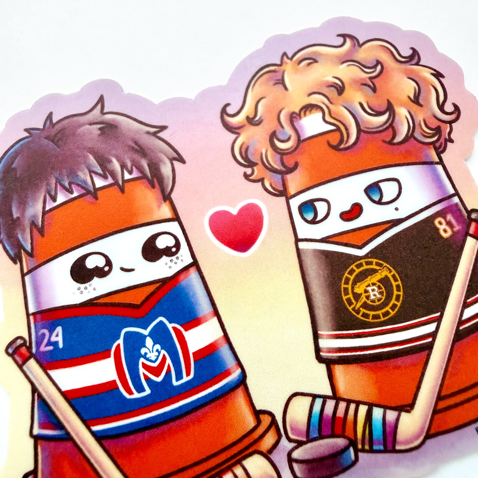Here's a fanart sticker inspired by the popular Canadian series; Heated Rivalry. When I saw that part of the story is taking place in Montreal, I had to draw Shane and Ilya as orange cones. These stickers are a limited edition, so get yours while you can.